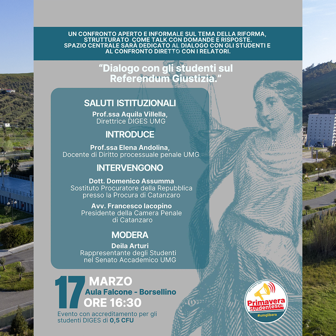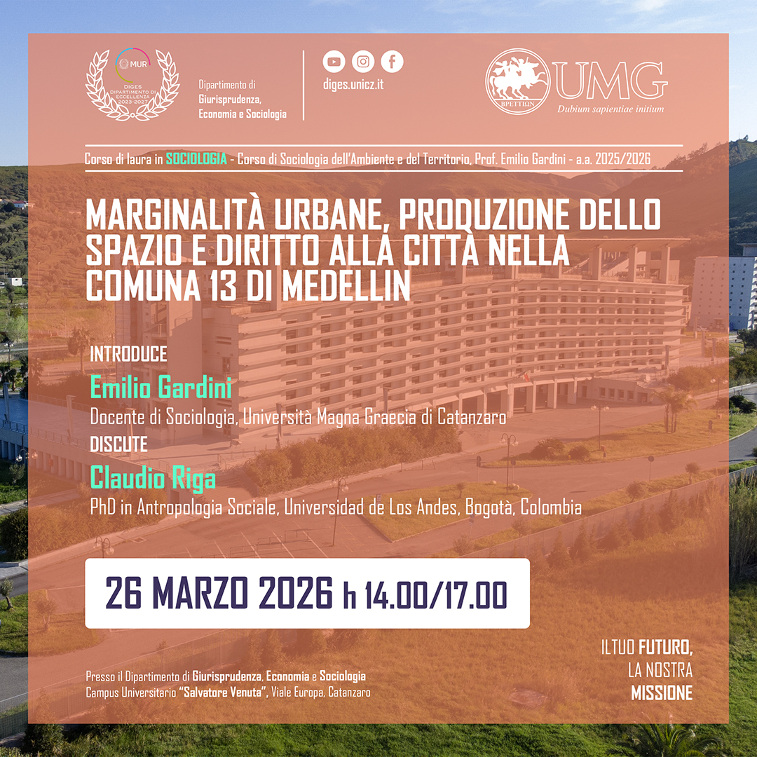 Il 19 novembre 2025, alle ore 9:30, si terrà presso l'Aula D del DiGES il Convegno dal titolo "Il terzo settore fra opportunità e sfide per la comunità". All'evento saranno presenti il Magnifico Rettore, la Direttrice del DiGES e i Rappresentanti delle Istituzioni e del Terzo Settore. Il convegno rappresenta l'occasione di conclusione del Master di I livello sul Volontariato e Terzo Settore, interamente finanziato dalla Regione Calabria.