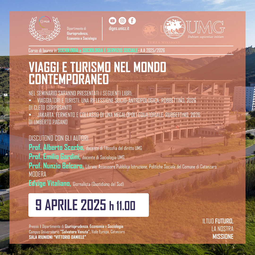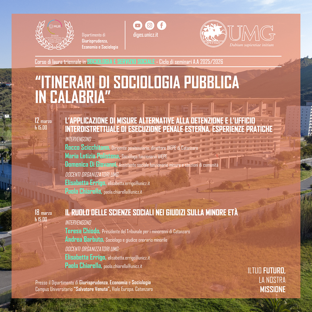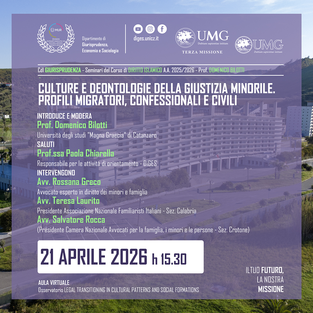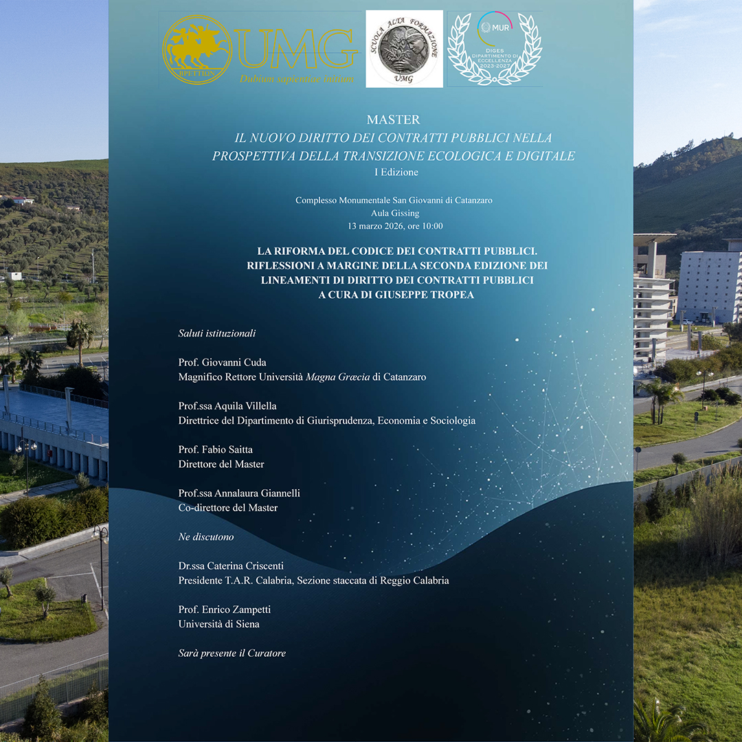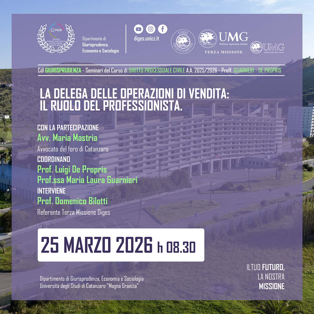 Il Dipartimento di Giurisprudenza, Economia e Sociologia (DiGES) promuove la ricerca scientifica nei settori giuridico, economico e sociologico, valorizzando l’interdisciplinarità e l’innovazione. Riconosciuto dal MUR come Dipartimento di Eccellenza 2023-2027, il DiGES partecipa a progetti di rilievo nazionale e internazionale, ospita la rivista scientifica Ordines e promuove numerose attività accademiche, culturali e di Terza Missione. Scopri di più sulla nostra offerta formativa e sulle iniziative visitando le sezioni del sito o contattandoci via e-mail.