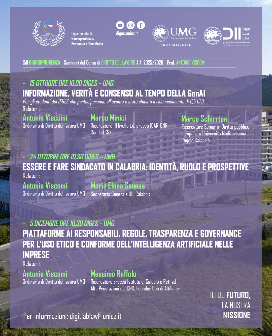 Cdl Giurisprudenza - Seminari del Corso di Diritto del lavoro, Prof. A. Viscomi - A.A. 2025/2026