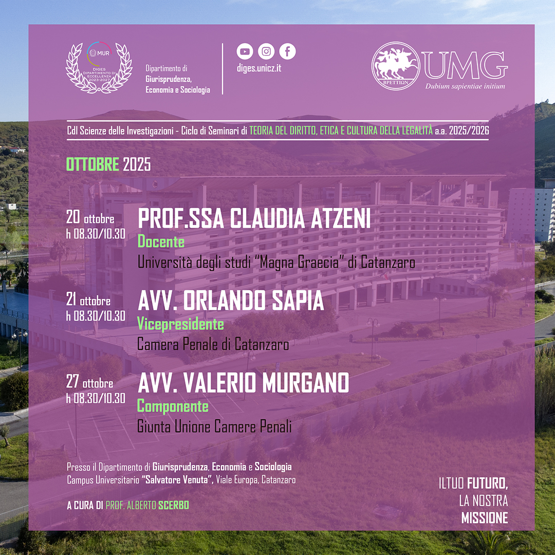 Cdl Scienze delle Investigazioni - Ciclo di Seminari di Teoria del diritto, Etica e Cultura della legalità a.a. 2025/2026