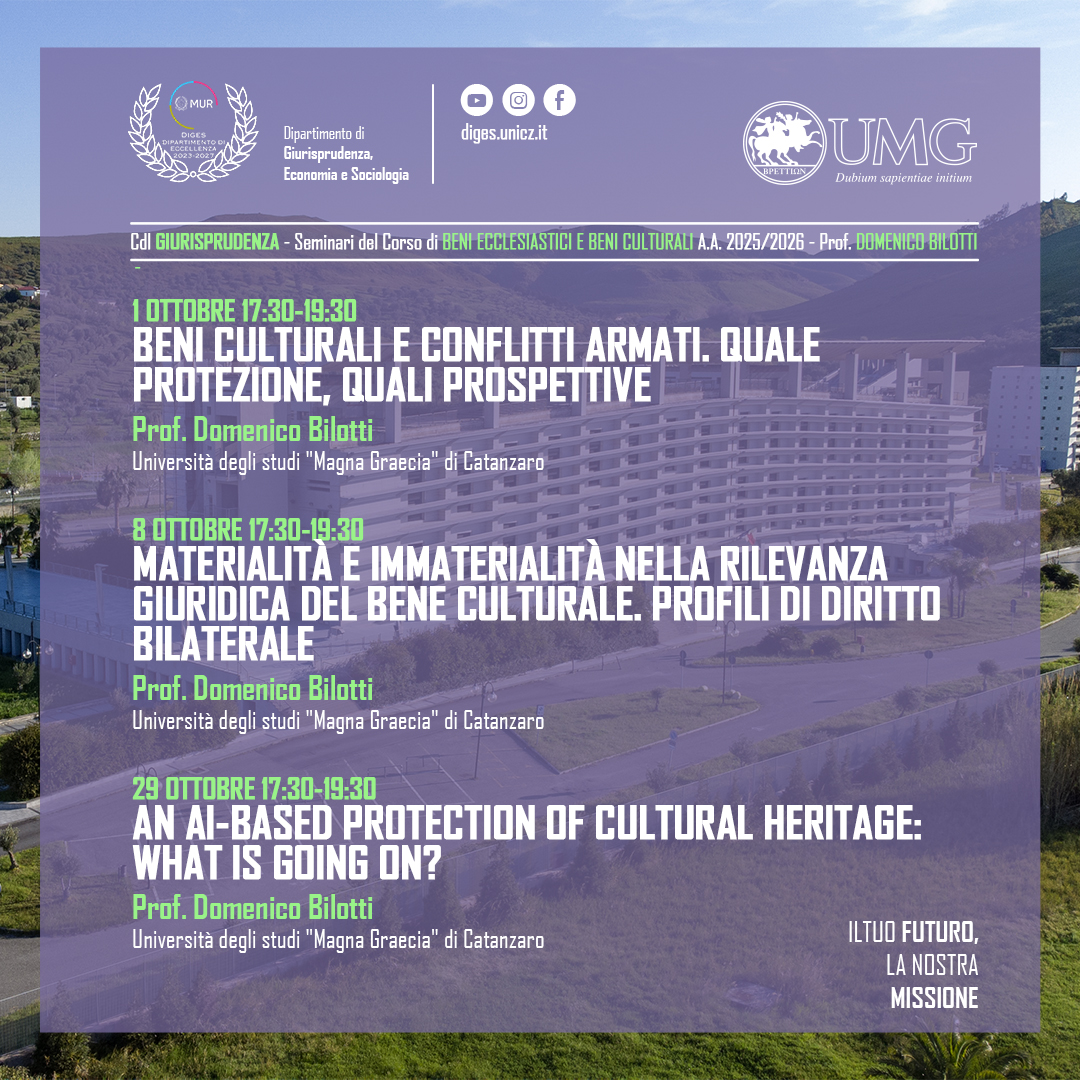 Seminari del corso "Beni ecclesiastici e beni culturali" - Cdl Giurisprudenza - Prof. Domenico Bilotti