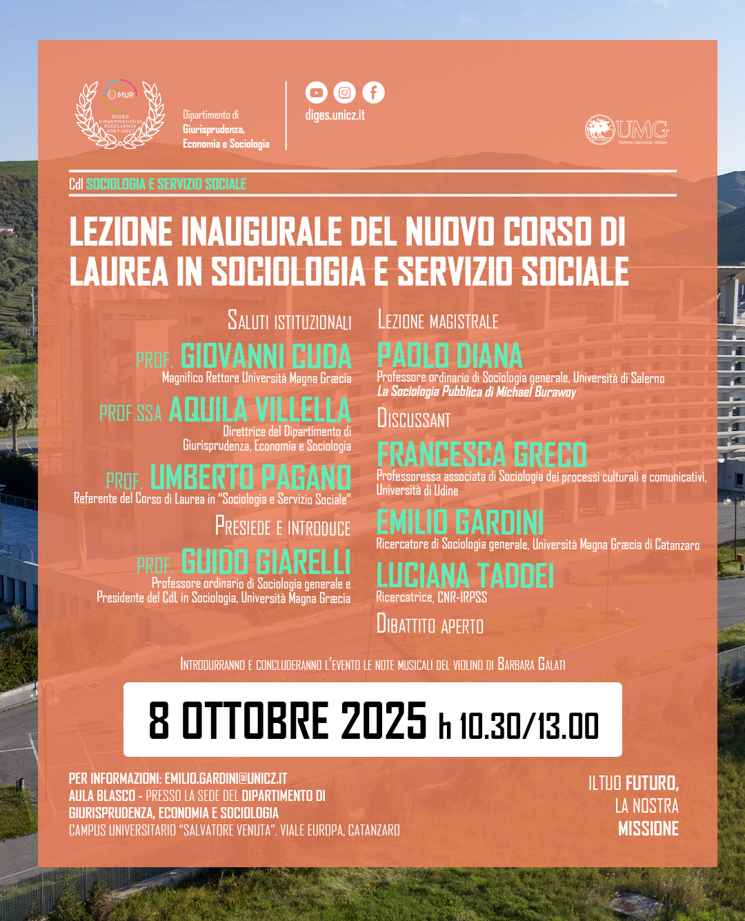 Lezione inaugurale del nuovo corso di laurea in Sociologia e Servizio Sociale