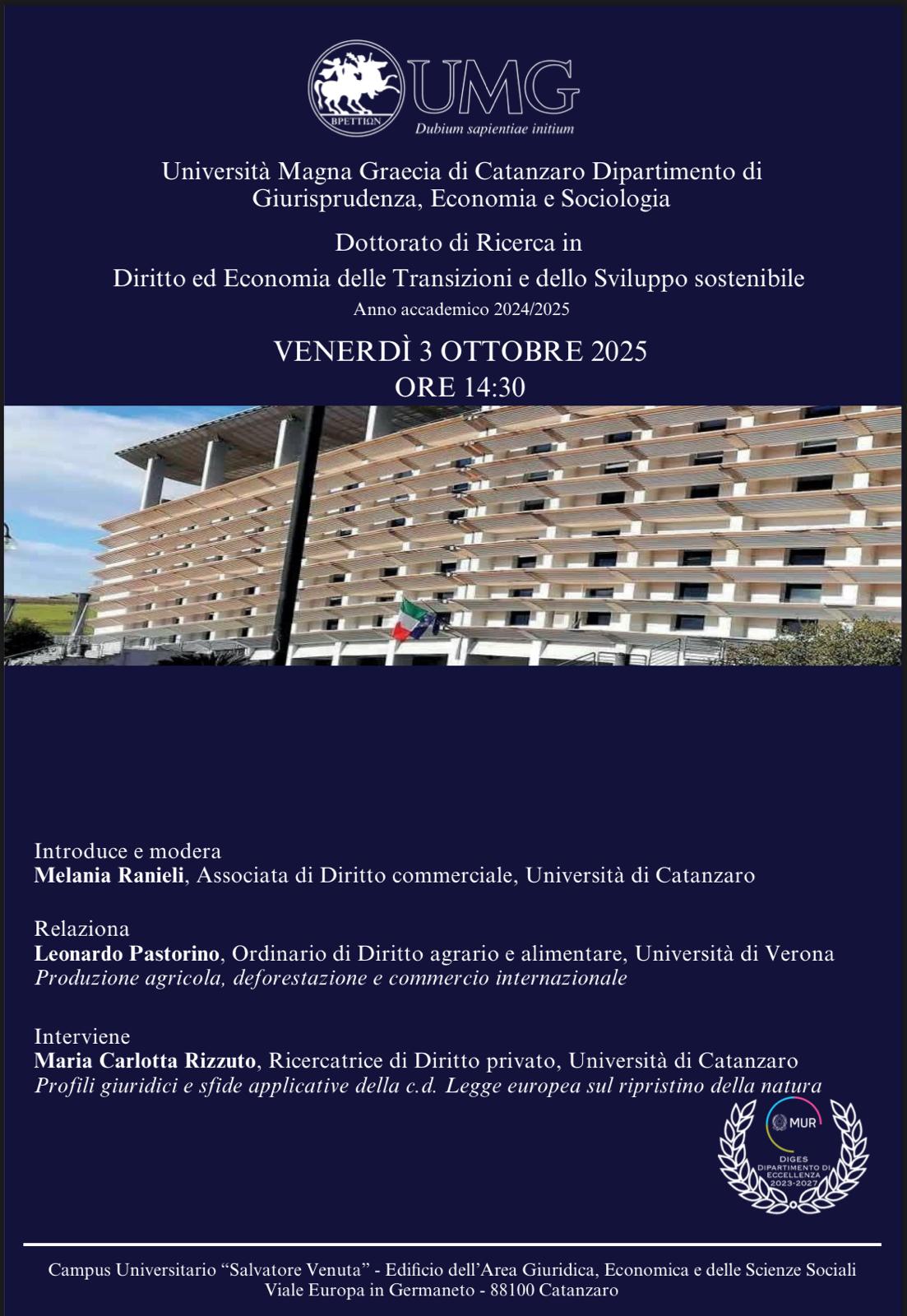 Seminario Dottorato di Ricerca in "Diritto ed Economia delle Transizioni e dello Sviluppo sostenibile" - Prof.ssa Ranieli