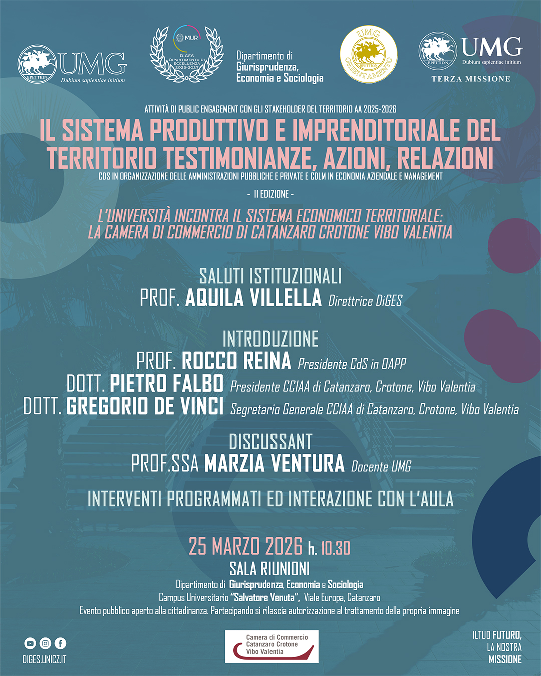 Primo appuntamento: 31 marzo 2026 – ore 10:30 Dipartimento di Giurisprudenza, Economia e Sociologia